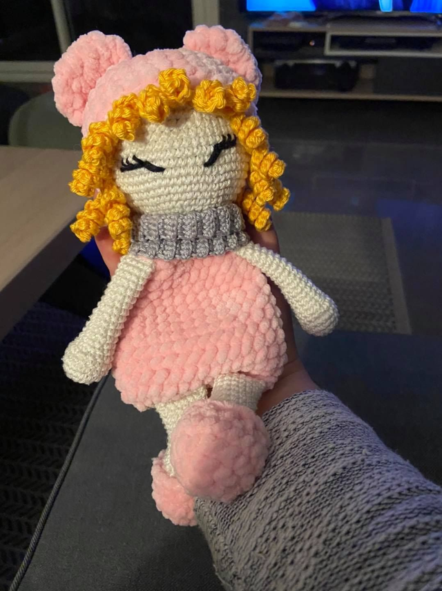 Craquez pour cette adorable poupée entièrement réalisée à la main au crochet. Avec son style tendre et ses jolis détails, elle apportera une touche douce et originale à une chambre d’enfant ✨